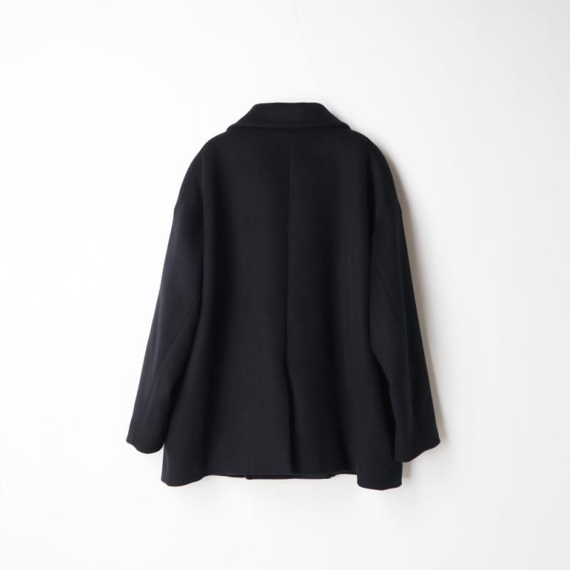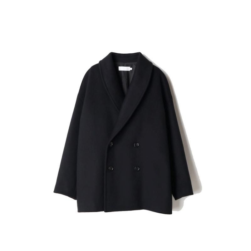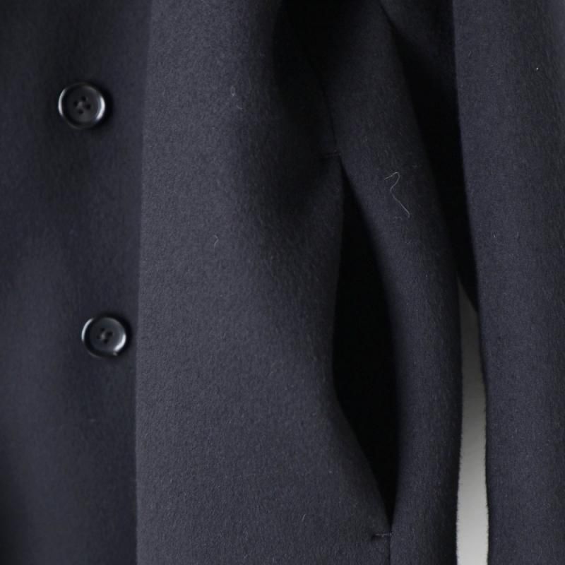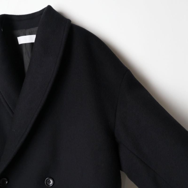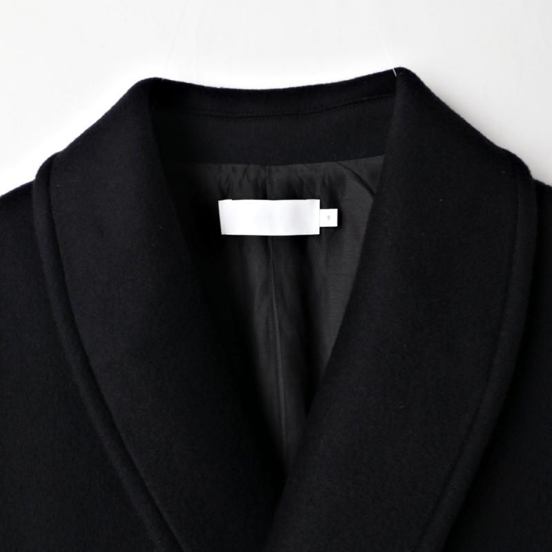 SUPER140's原料を混紡したダブルメルトンのショールカラーコート。
