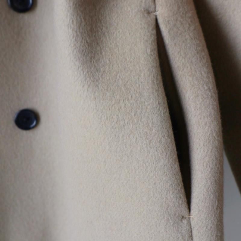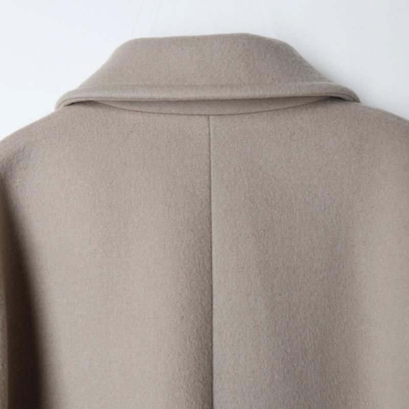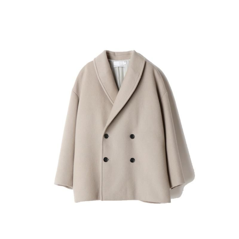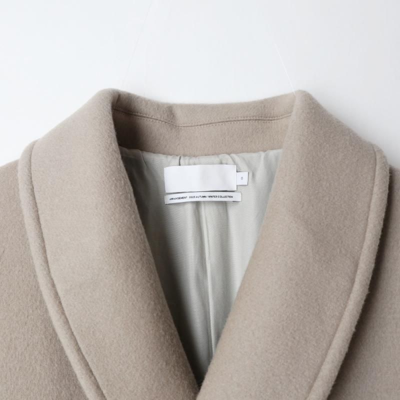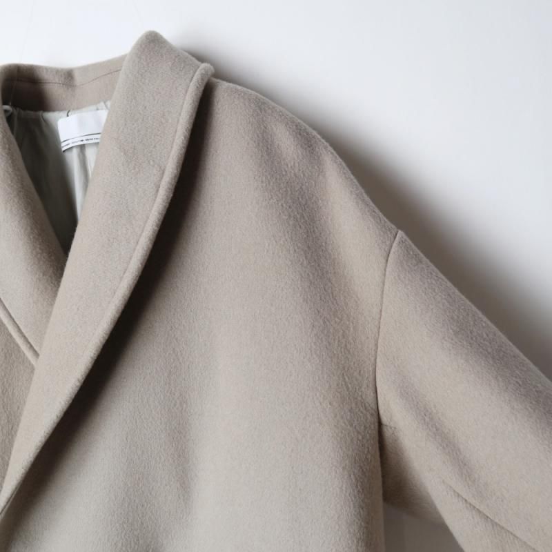 SUPER140's原料を混紡したダブルメルトンのショールカラーコート。
