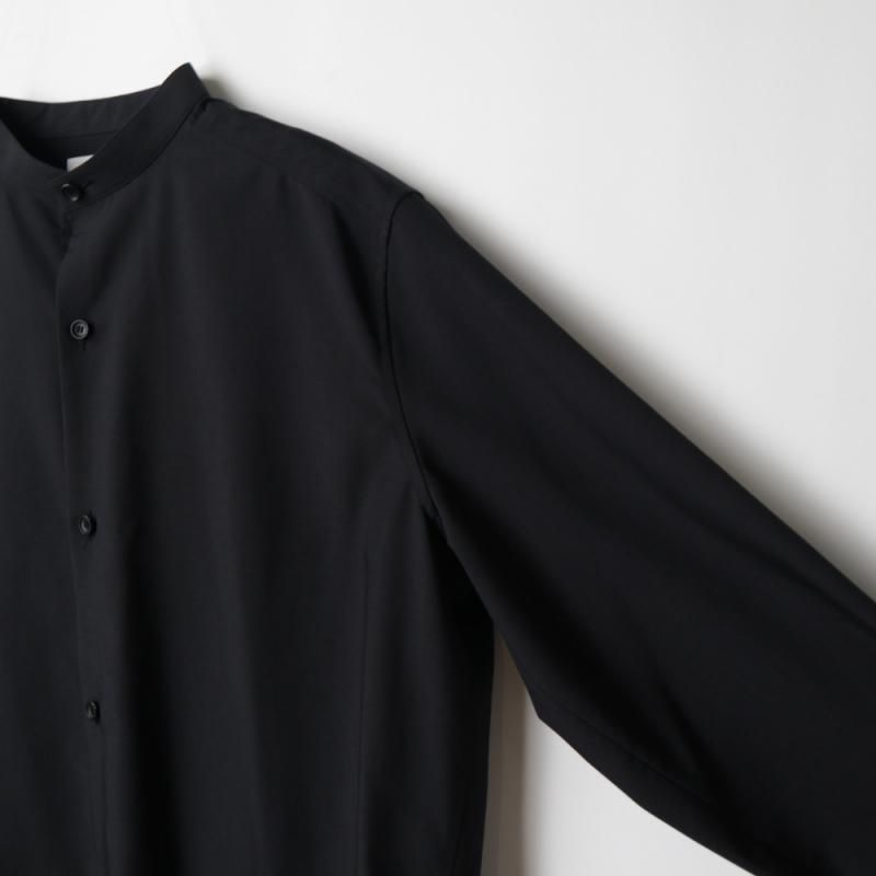 スーパーライトのスパンブロード素材を使用したバンドカラーシャツ。