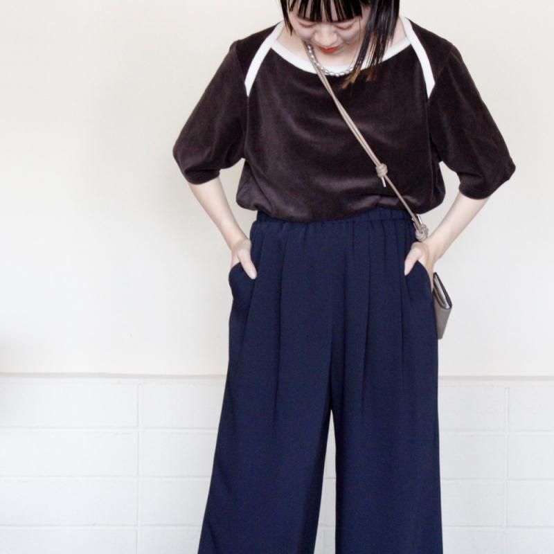 パイピングでスポーティーぽさもありながらネック部分はボートネックにしているので、子供っぽくならずに着ていただけます。