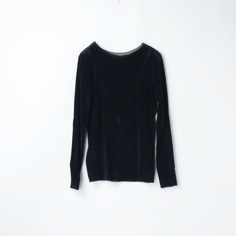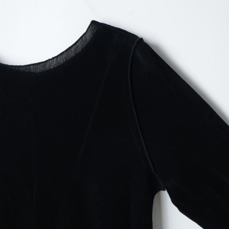 上品な光沢感を持つ肌触りのよいベロア生地を使用したシアーベロアプルオーバー。
