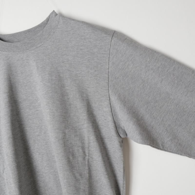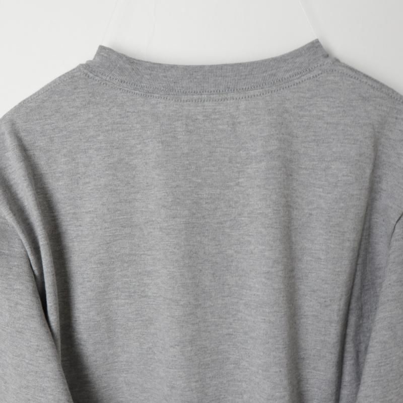 長い繊維で揃えられたコーマ糸にオーガニックの落ち綿を一定の割合でトッピングして生み出されるスラブ糸を使用。