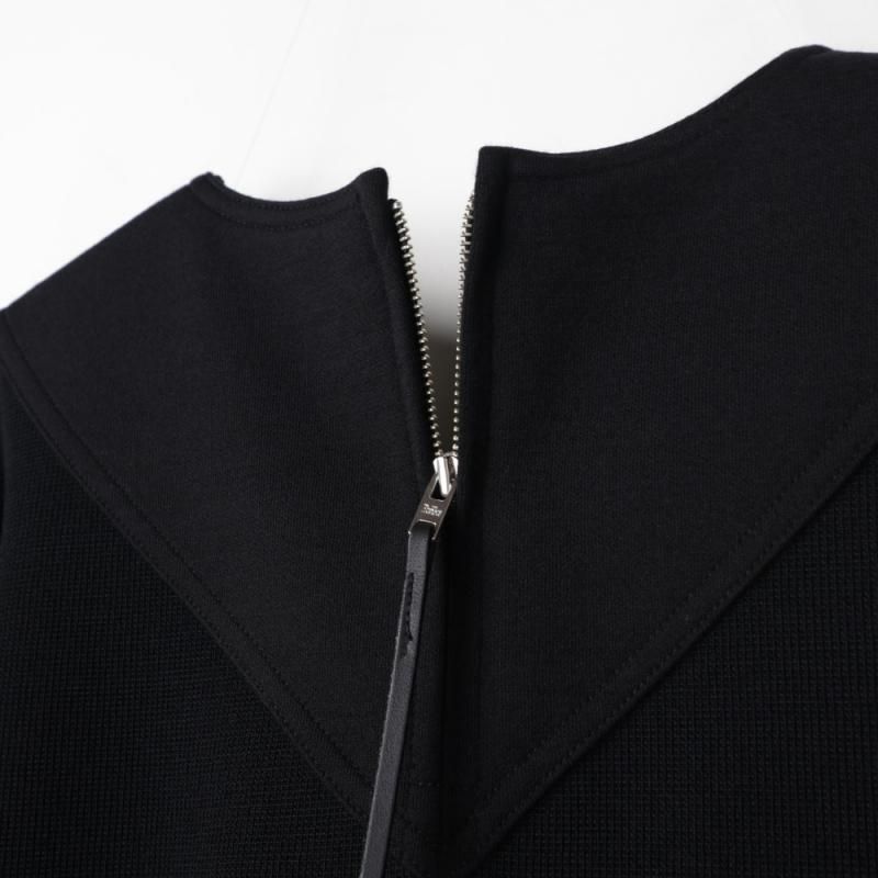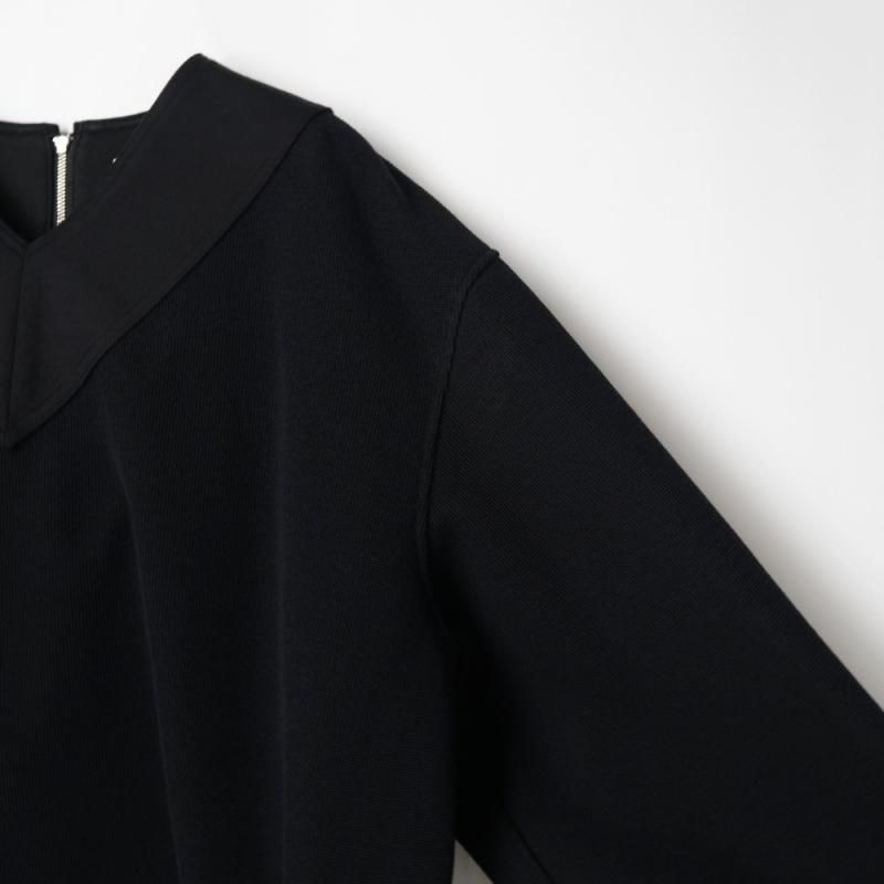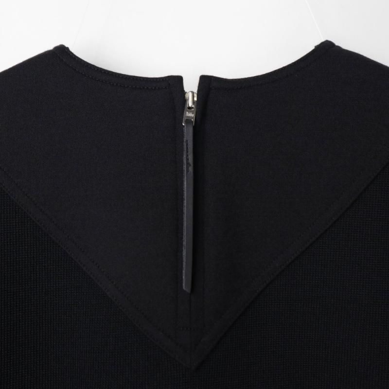 フロントVネックのディテールと裾部分の切り替えが印象的なデザインです。