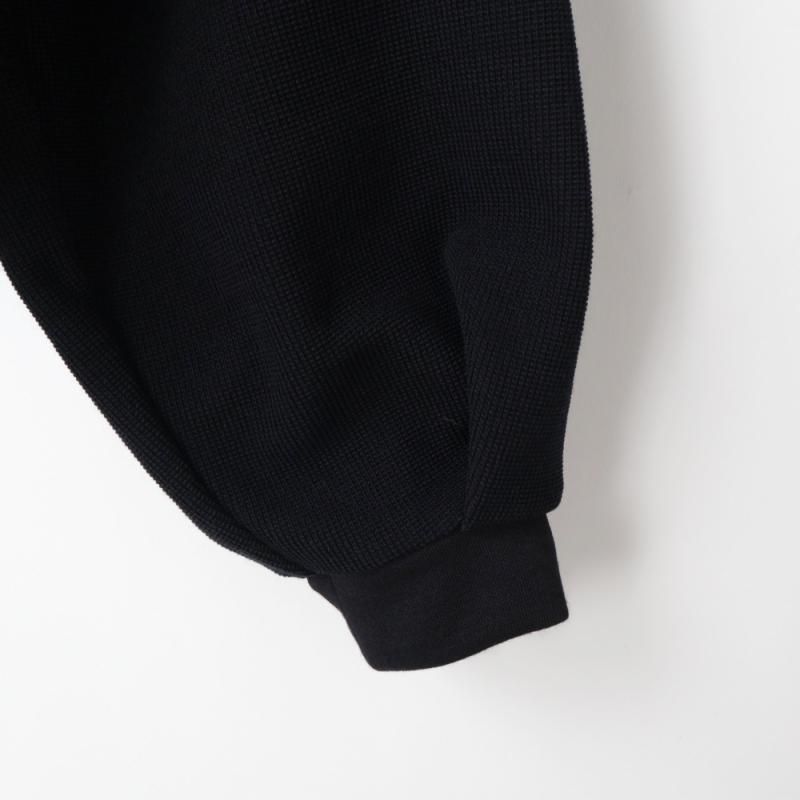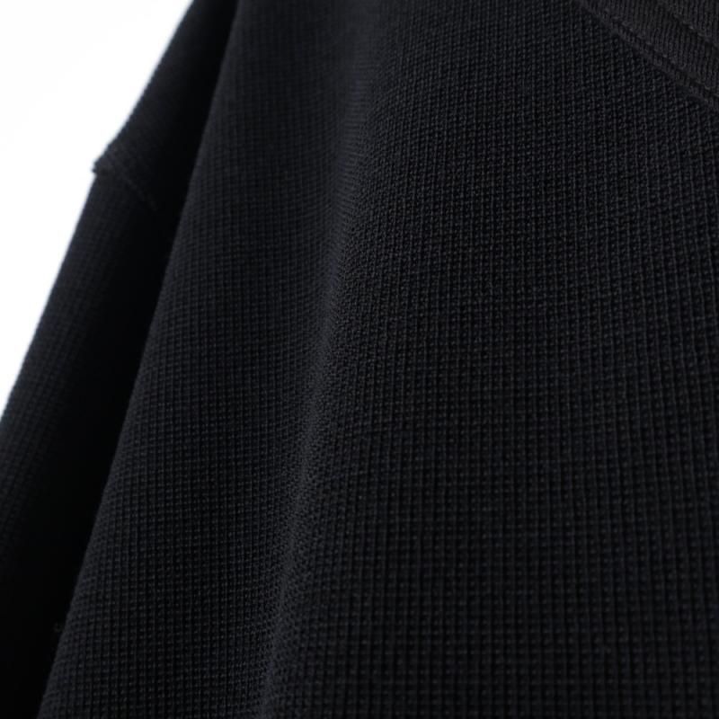 ポリエステル/ウールのミニワッフル素材を使用したVネックプルオーバー。
