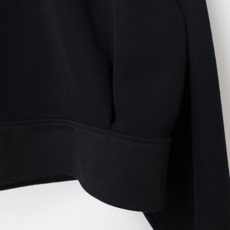 肩回りはドロップショルダーで全体的にゆとりを持たせたパターン設計。