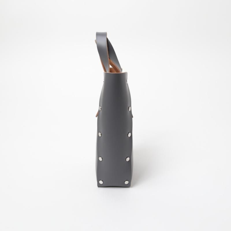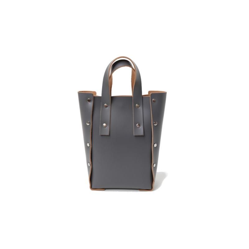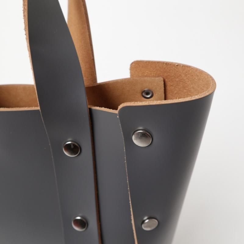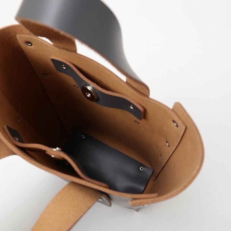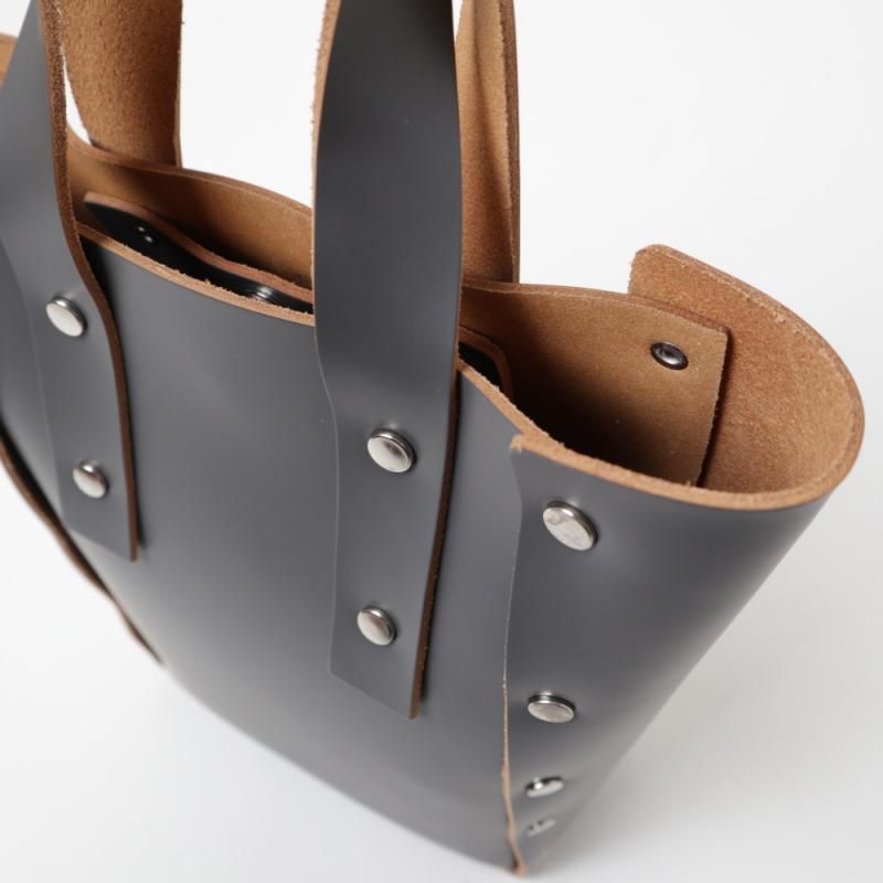 素材にはガラスレザーを採用し、さらりとした質感の表面と、無染色のレザーの表情が見える裏面とのコントラストも特徴。