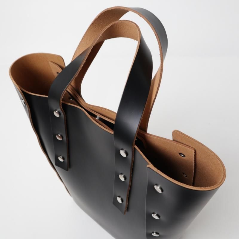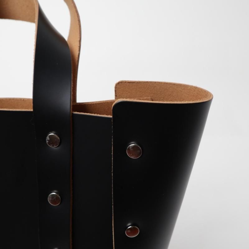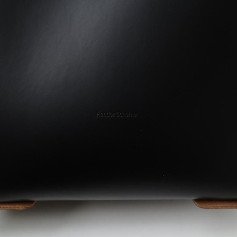 素材にはガラスレザーを採用し、さらりとした質感の表面と、無染色のレザーの表情が見える裏面とのコントラストも特徴。