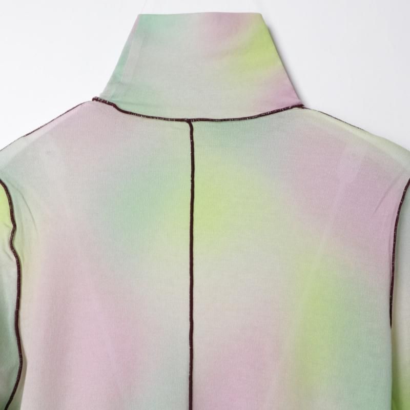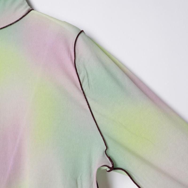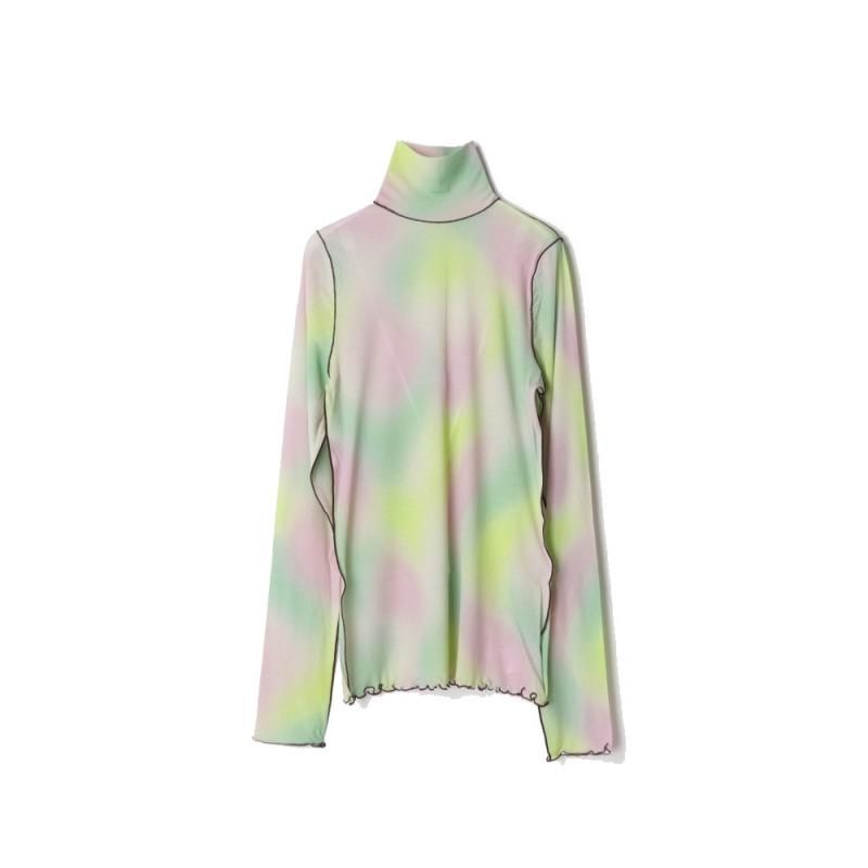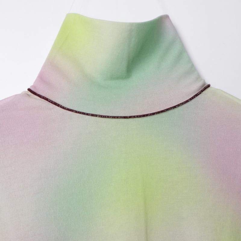 絶妙なミックスカラーがパッと目を惹くハイネックカットソー。