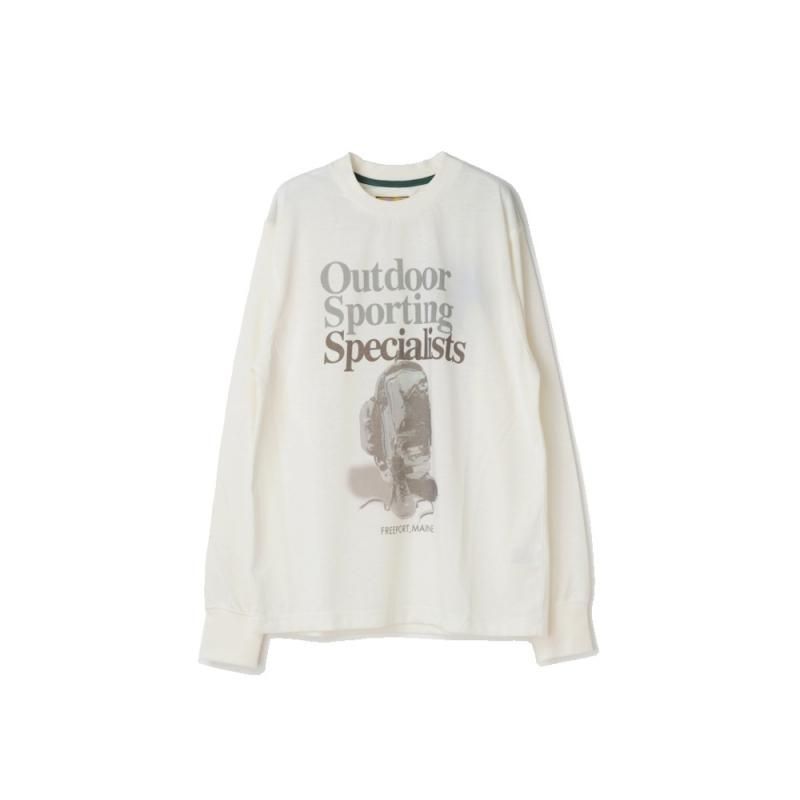 フロントにブランドアーカイブのマウント・カタディン・パックとクレスタ・ハイカーのグラフィックに、ロゴ・プリントを大胆にあしらった長袖Tシャツです。