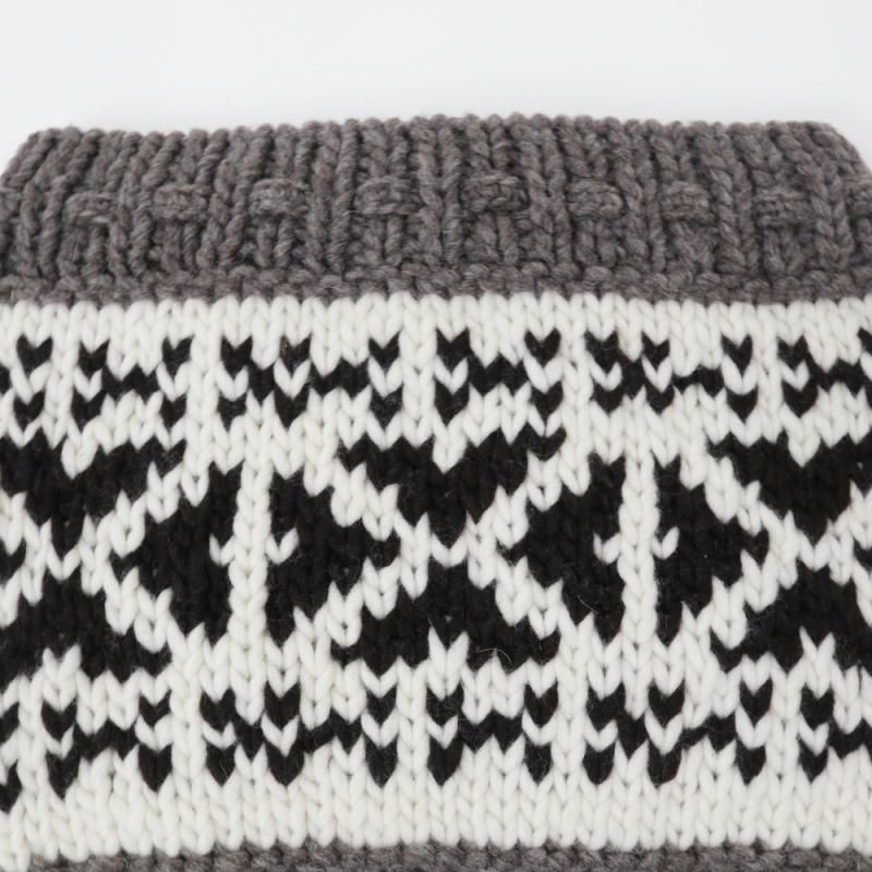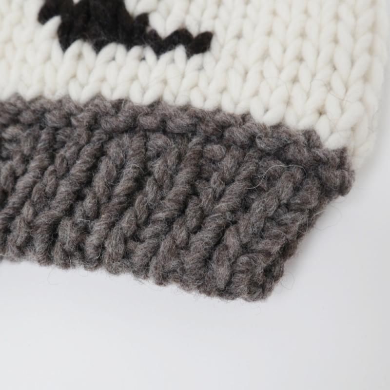 ブランド定番のウール100%極太のロービング糸を使って、ハンドメイドで編み上げたカウチンセーターです。