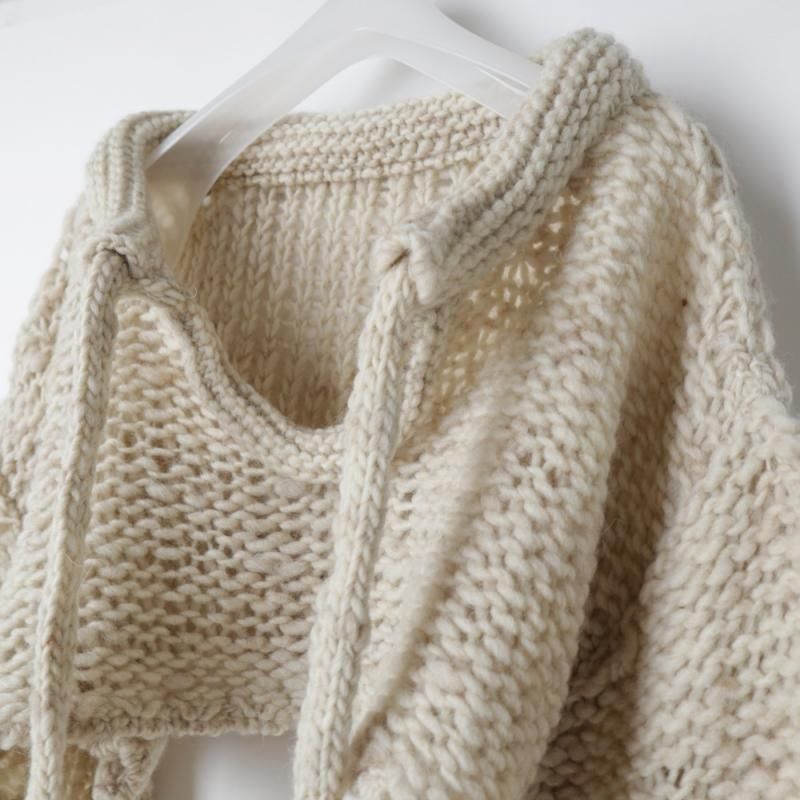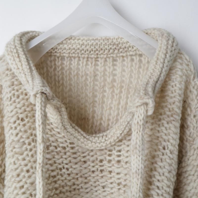 編む時に針を1本抜くことで手編みのような雰囲気が出ています。
