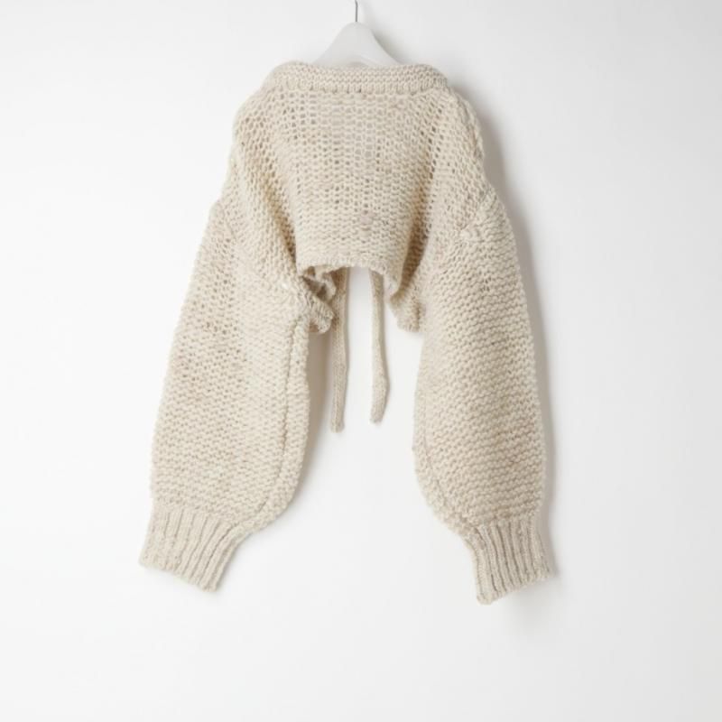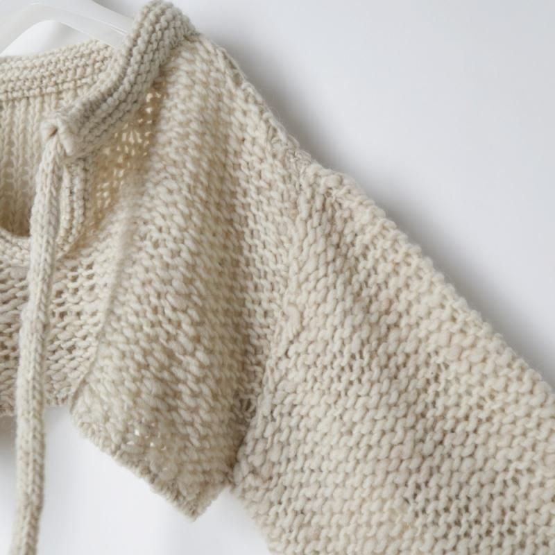 英国羊毛を使用したまるで手紡ぎのようなナチュラルな表情を持った糸を使用したショートニットボレロ。