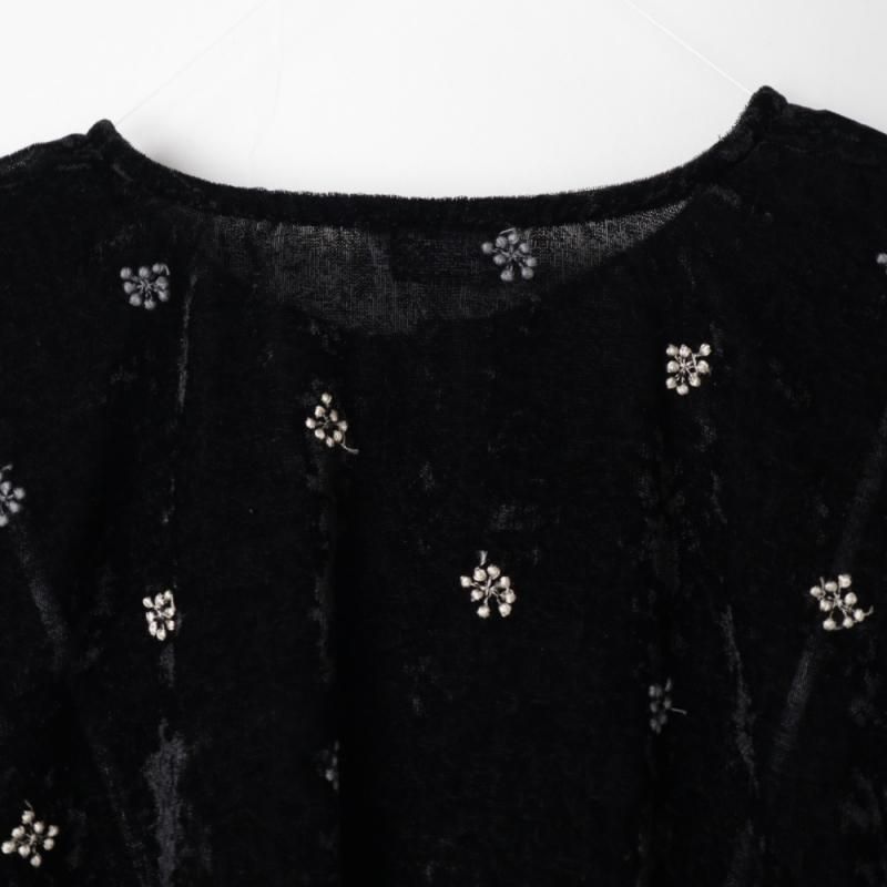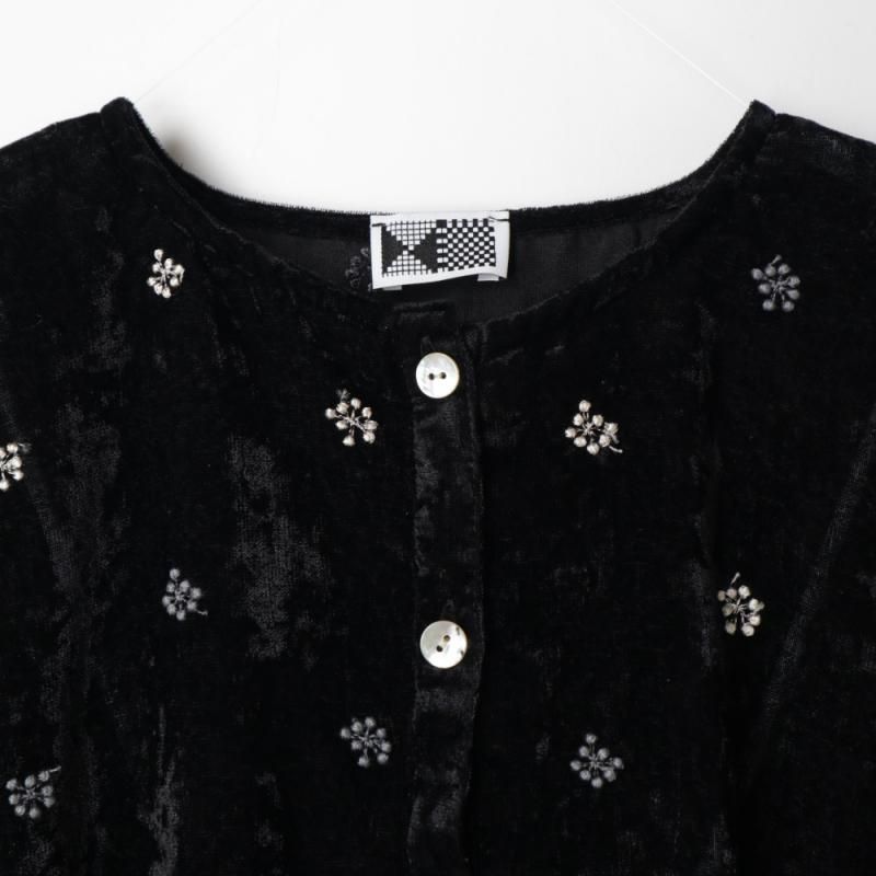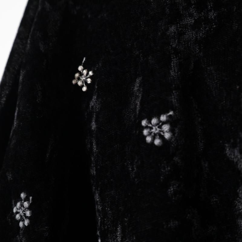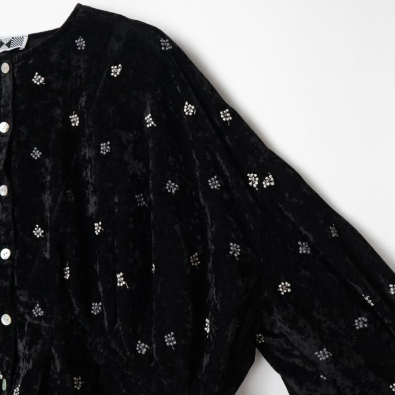 ポンポンと弾ける音のように羅列させた粒粒の刺繡はコットンとレーヨンを使い分け質感を楽しむように作られています。