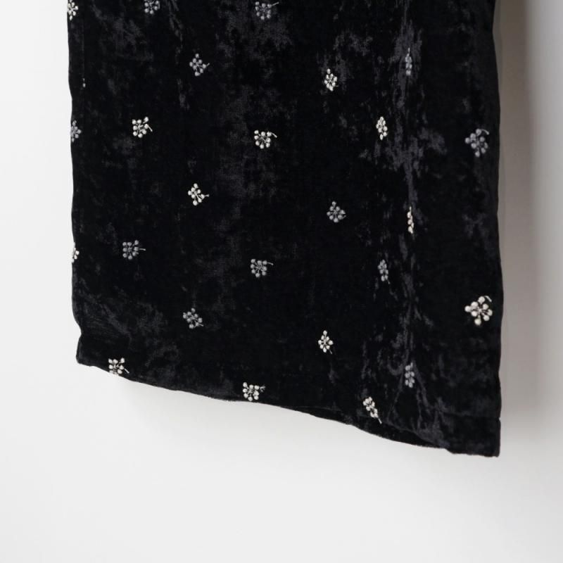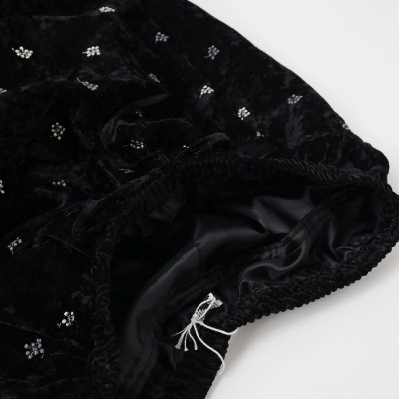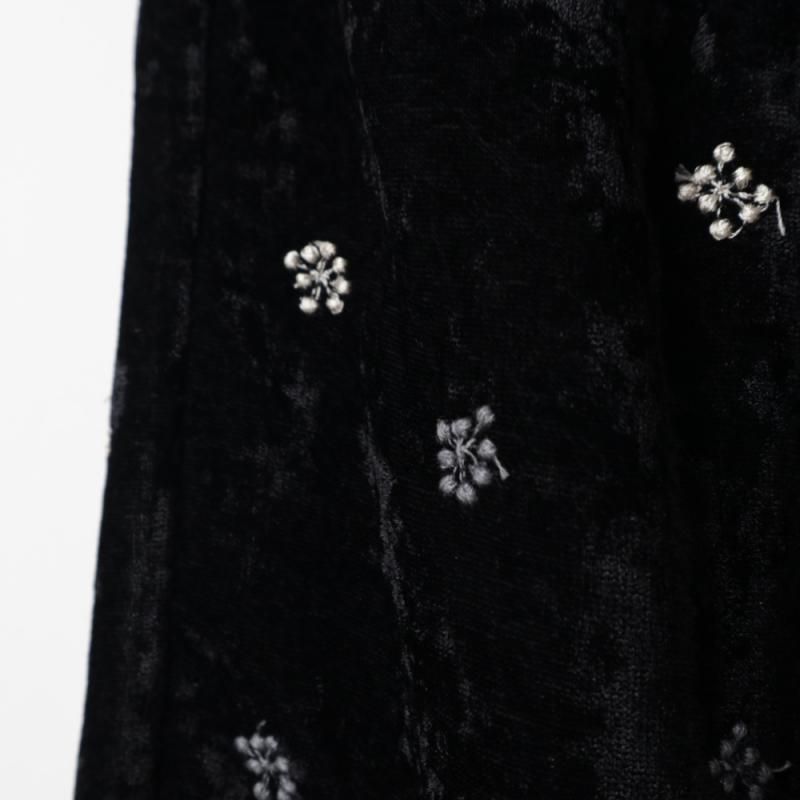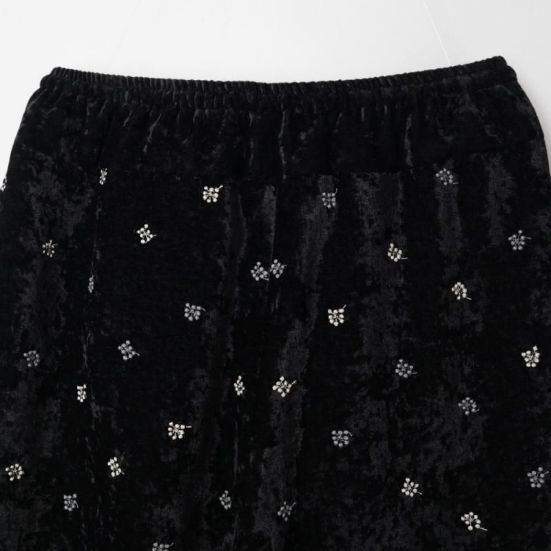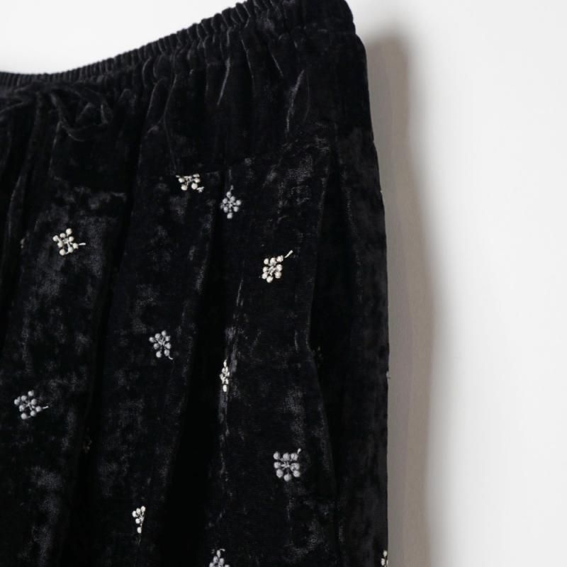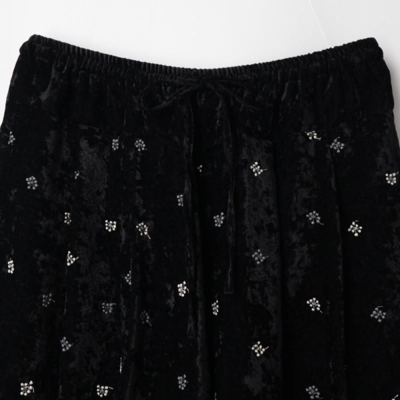 立体感のある繊細な刺しゅうが施されたワイドパンツ。