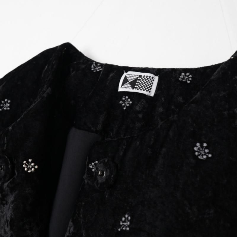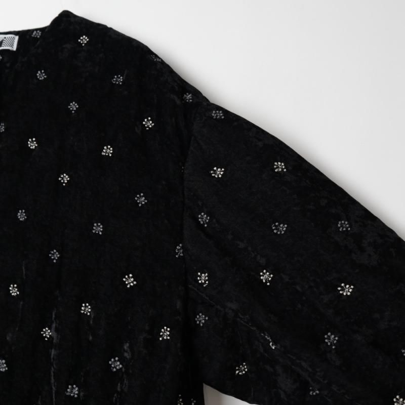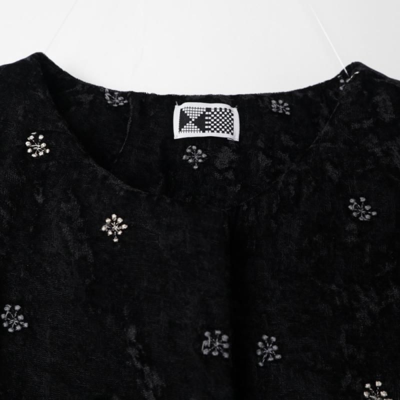 ポンポンと弾ける音のように羅列させた粒粒の刺繡はコットンとレーヨンを使い分け質感を楽しむように作られています。