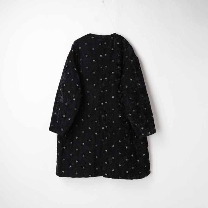 立体感のある繊細な刺しゅうが施されたミドルコート。