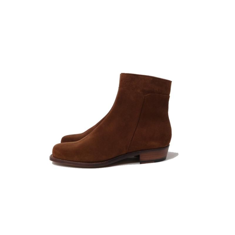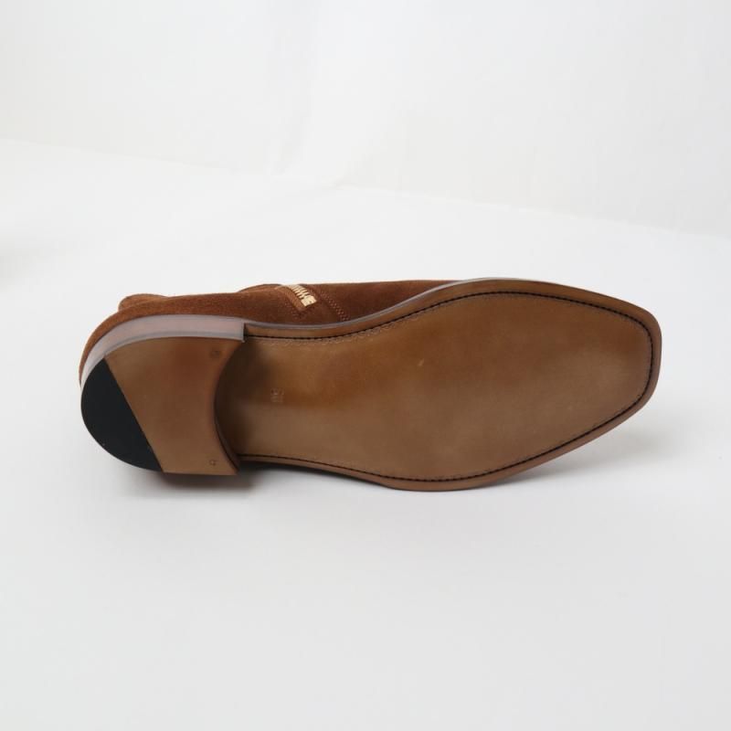 ボリュームのあるセミスクエアトゥでありながら、控えめなコバのバランスと細く高く設定したシャフトによって、全体の見え方をシャープにしています。