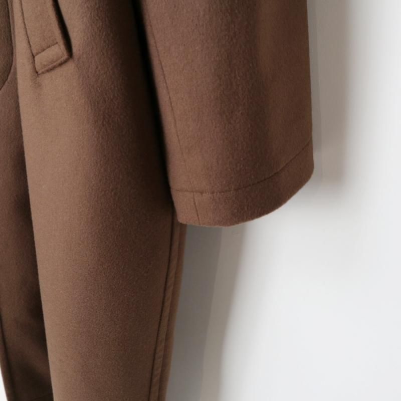 スーパー160sのラムウールを使用し、毛乱れが起きにくいよう丁寧に何度も起毛を施したショートビーバー仕上げの生地を使用。