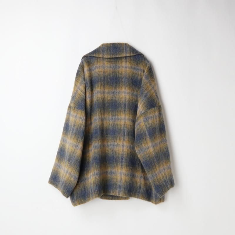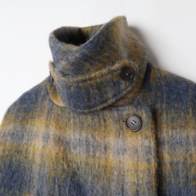 大きいチェックとカラーリングが目を引くイタリアBALLI社の生地を使用したショート丈のコート。