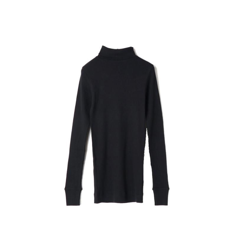 ホームスパンの定番、丸胴テレコのタートルネックプルオーバーです。