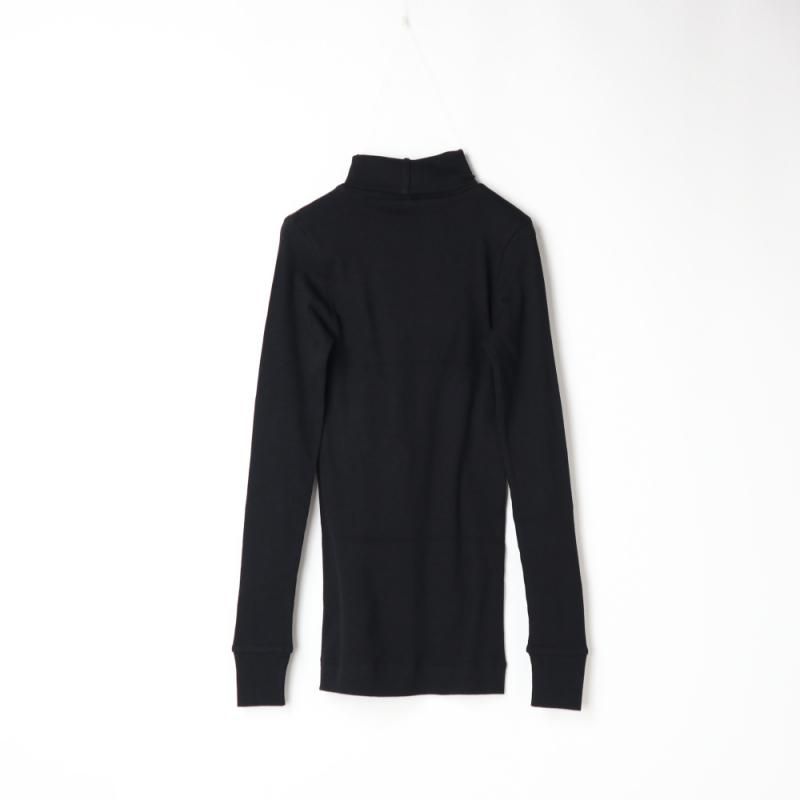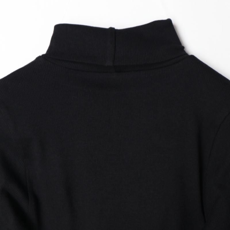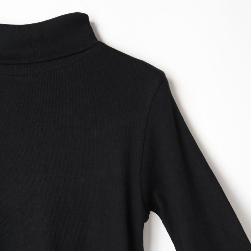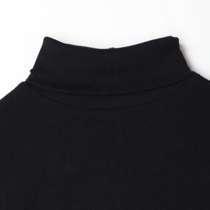 伸縮性に富み、肌触りの良いテレコ編みのタートルネックカットソー。