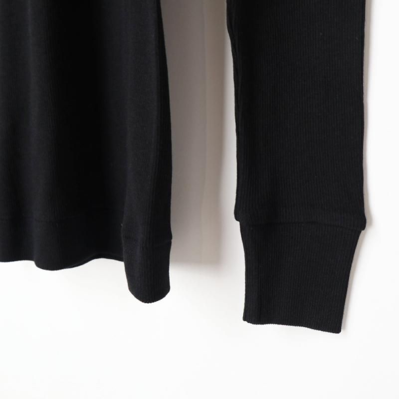 ネック部分は生地が二重になり、袖口の切り替えもポイントになっています。
