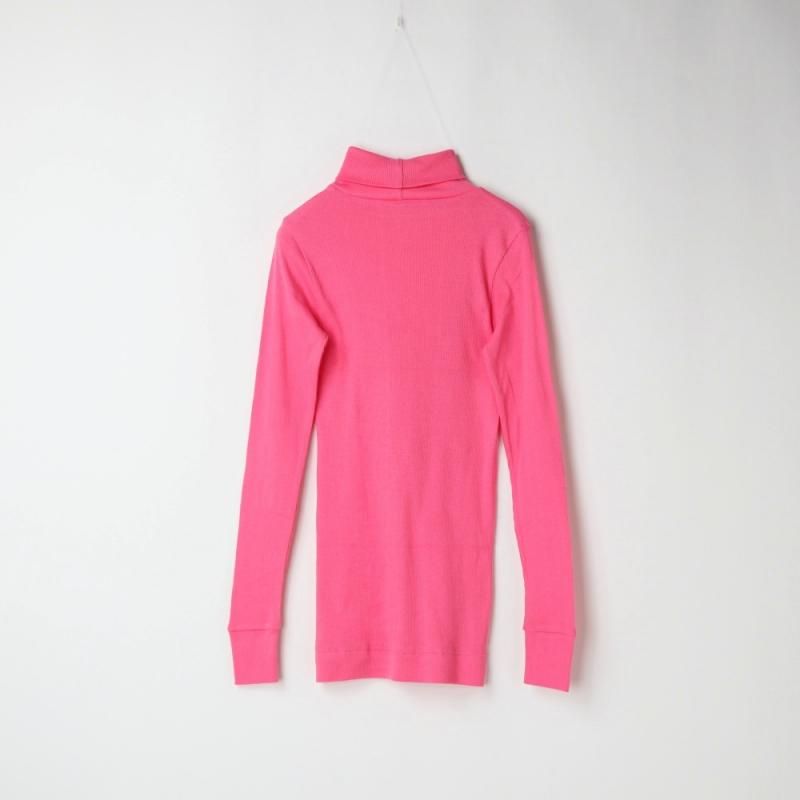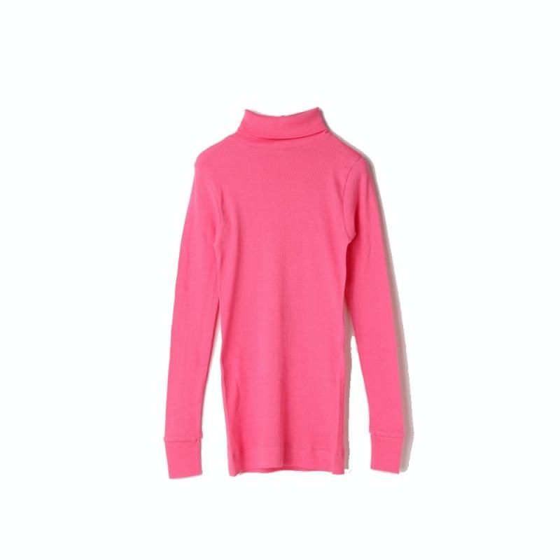 ホームスパンの定番、丸胴テレコのタートルネックプルオーバーです。