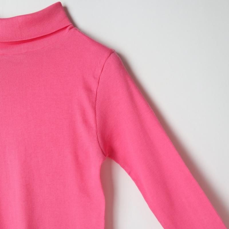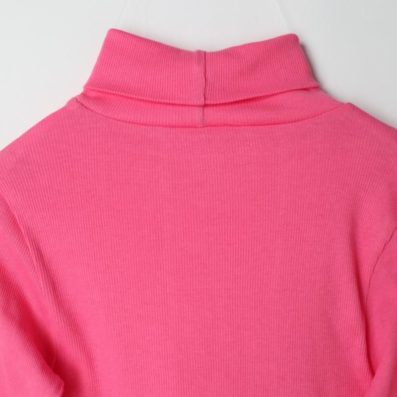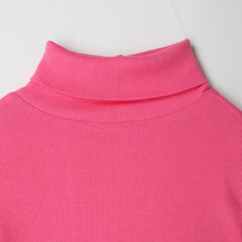 伸縮性に富み、肌触りの良いテレコ編みのタートルネックカットソー。