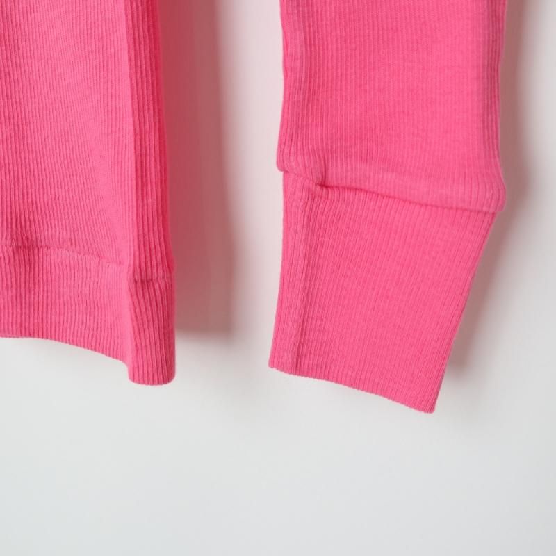 ネック部分は生地が二重になり、袖口の切り替えもポイントになっています。