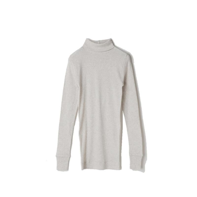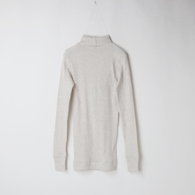 ホームスパンの定番、丸胴テレコのタートルネックプルオーバーです。