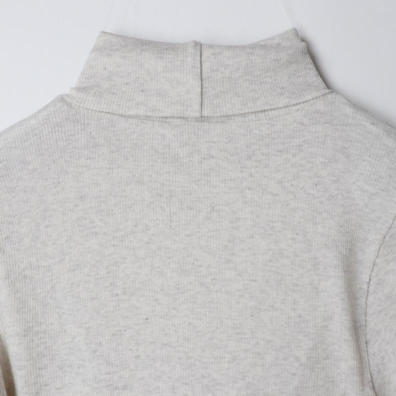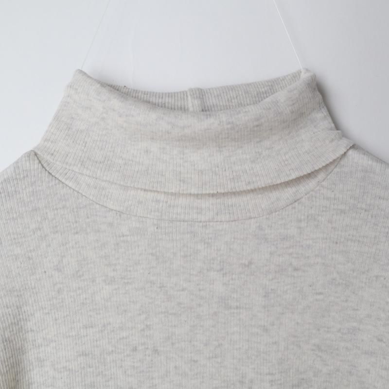 伸縮性に富み、肌触りの良いテレコ編みのタートルネックカットソー。