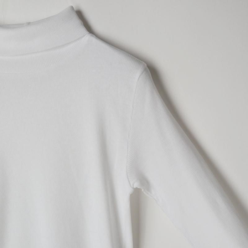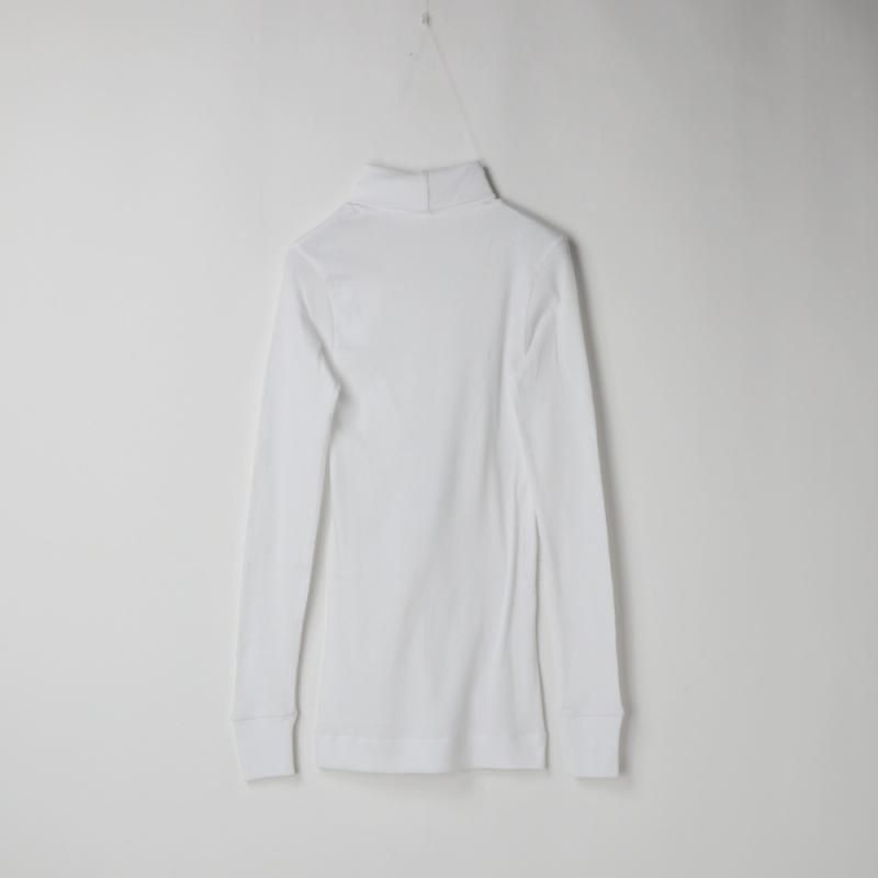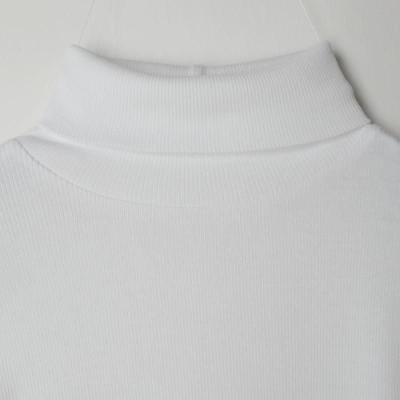 伸縮性に富み、肌触りの良いテレコ編みのタートルネックカットソー。