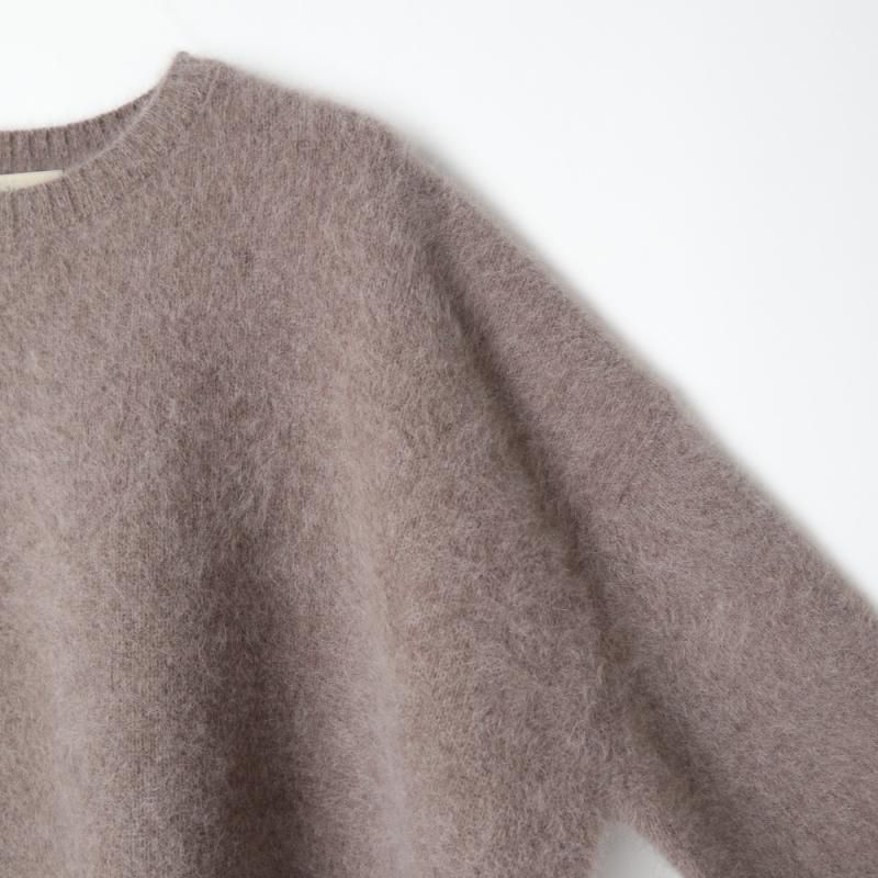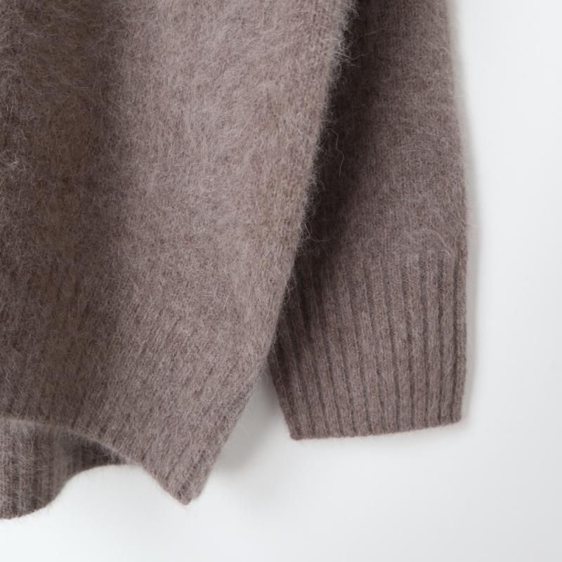 柔らかくふんわりとした風合いのフォックスと、保湿性と通気性に優れ優しい肌触りのヤクをブレンドした上質な糸を使用したプルオーバー。