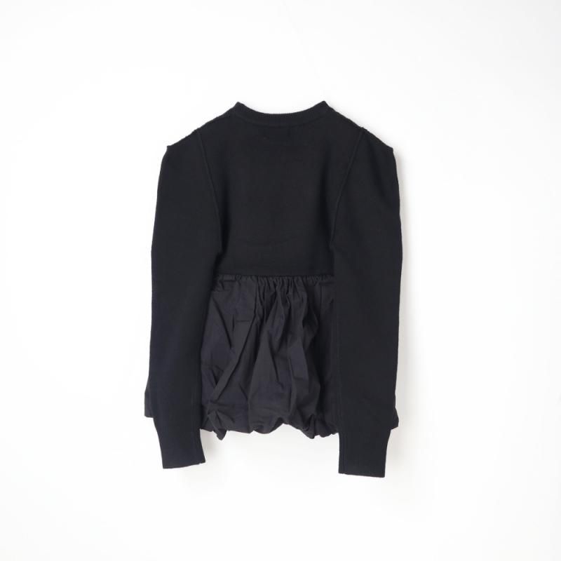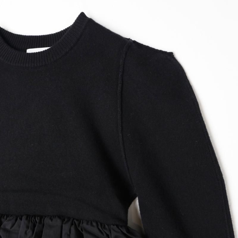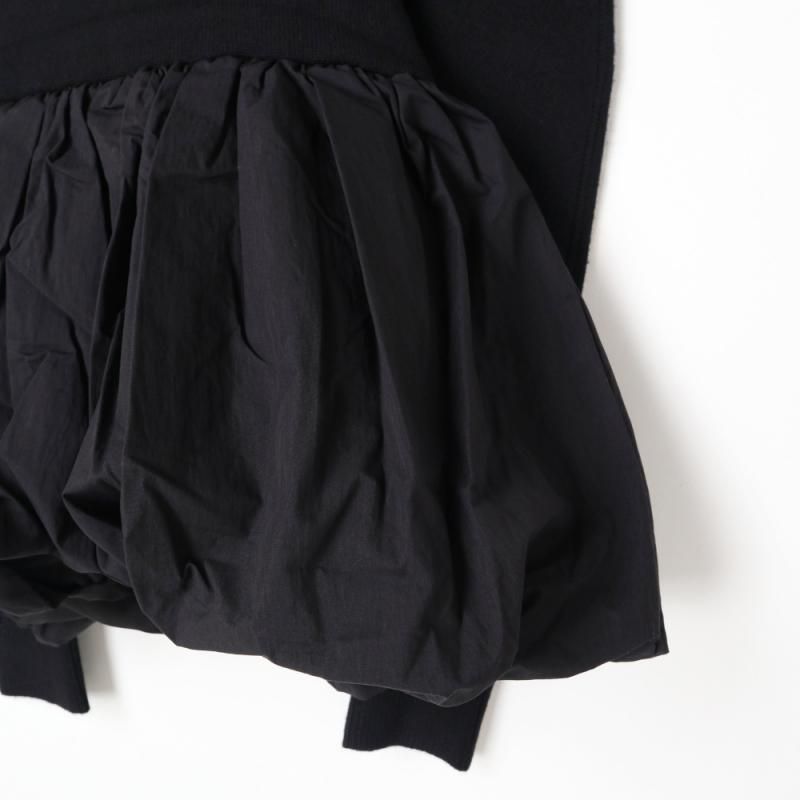 ニットとバルーンスカートがドッキングされた、デザイン性の高いニットトップス。