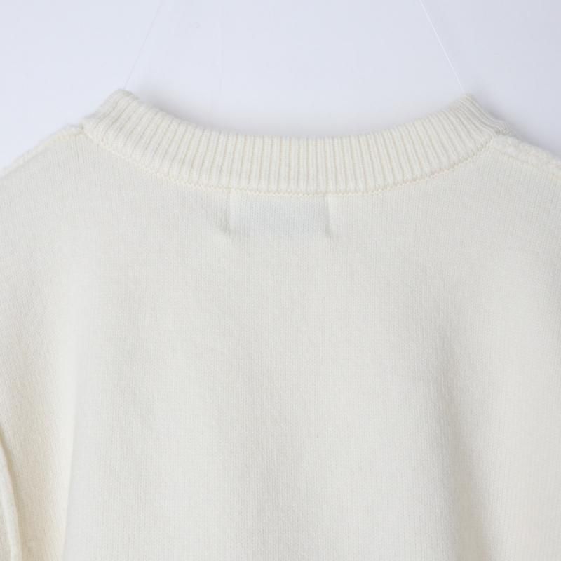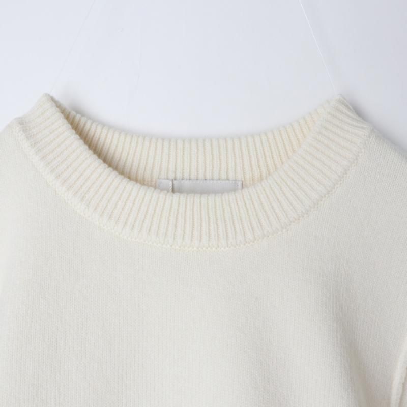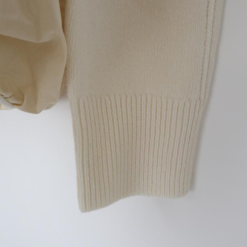 ニット部分にはウール混の肌触りの良いソフトな糸を使用し、袖山にダーツを施すことでモードな印象のパワーショルダーに仕上げられています。