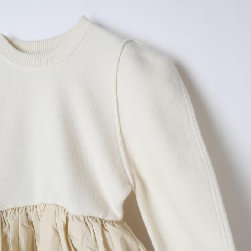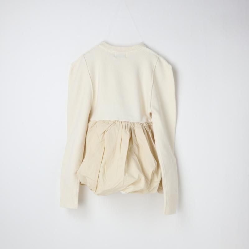 ニットとバルーンスカートがドッキングされた、デザイン性の高いニットトップス。