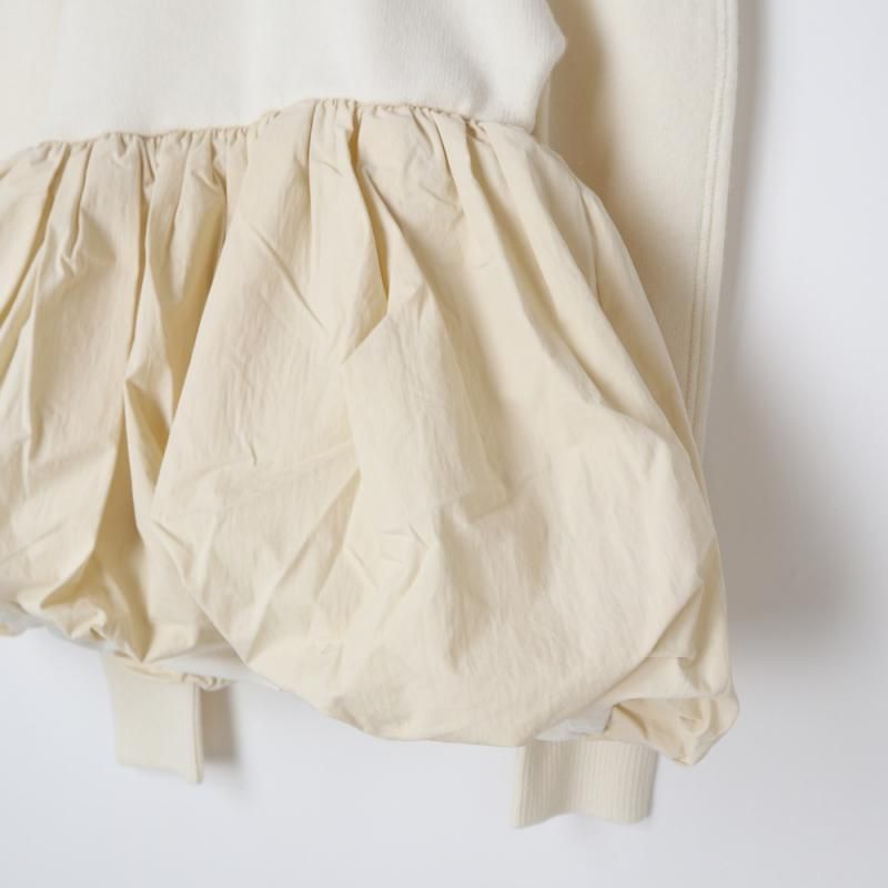 バルーンスカート部分にはハリ感のあるコットンナイロン素材を使用し、贅沢にタックギャザーを入れることで、立体感のある美しいフォルムを実現。