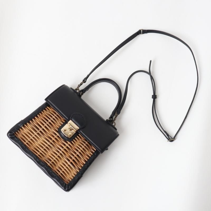 渋なめしのカーフと紅籐との組み合わせのハンドバッグです。