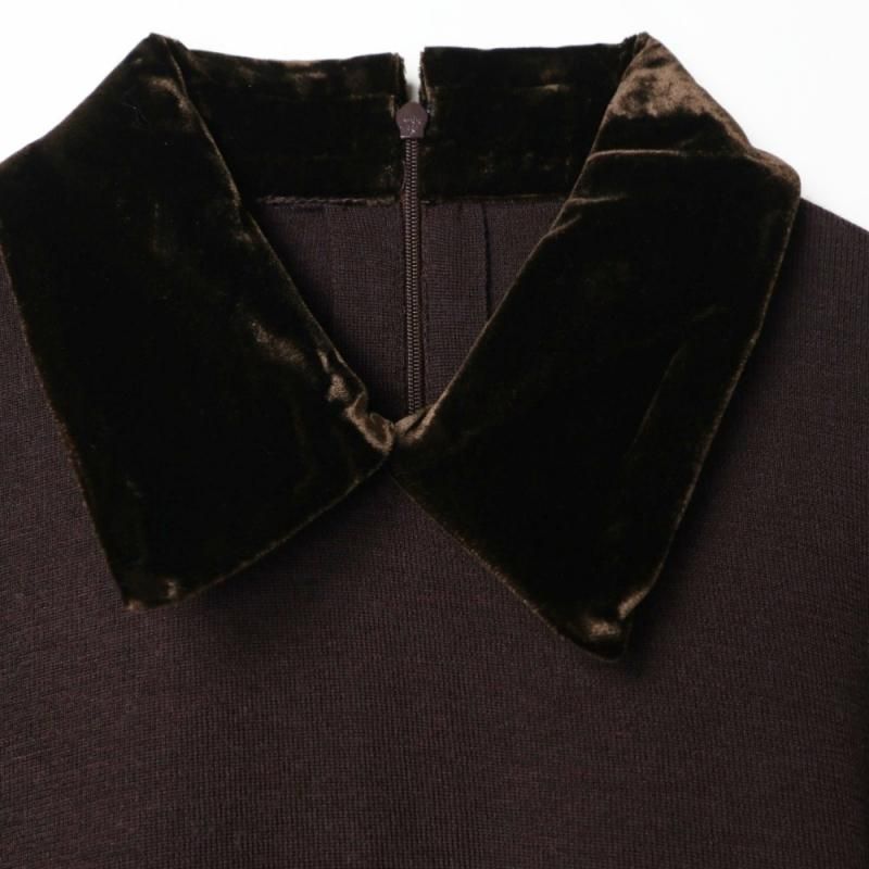 襟と袖に使用したベロアはやや光沢があり、上品な印象をプラスしました。