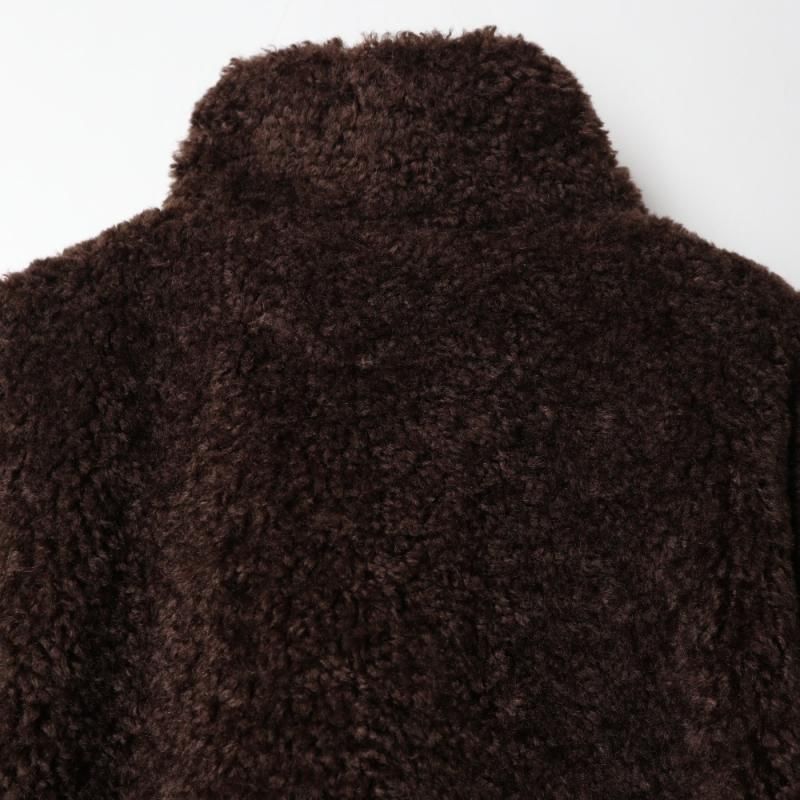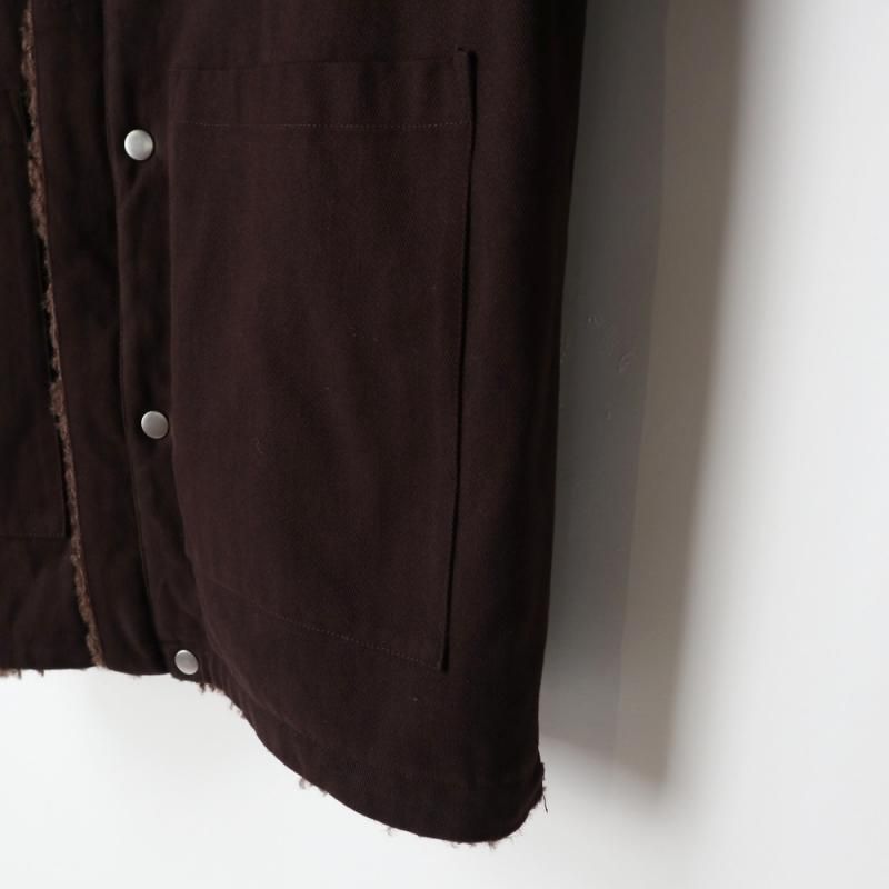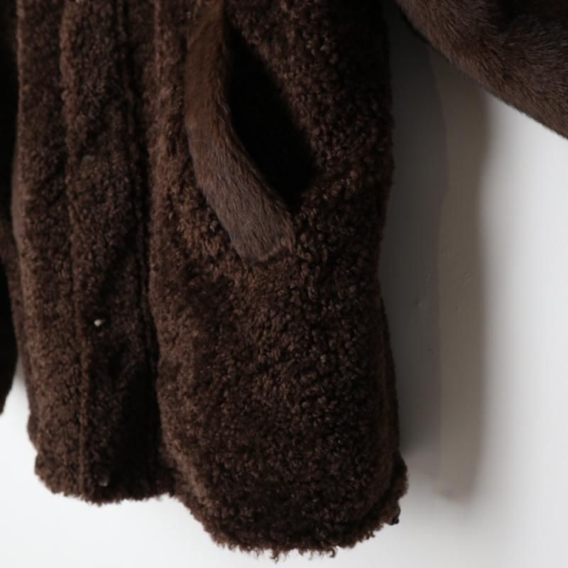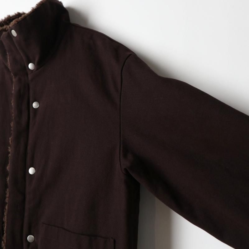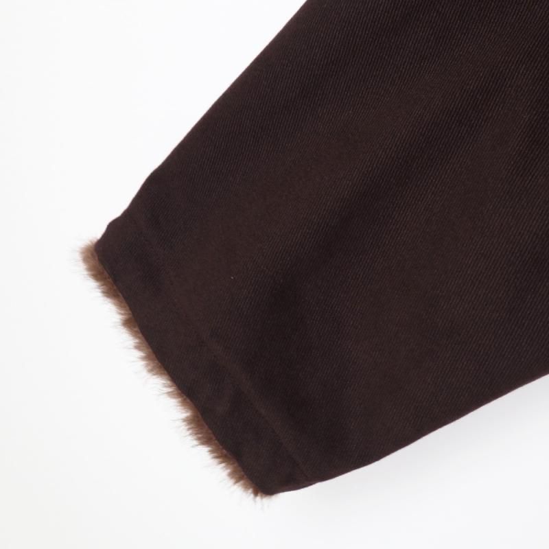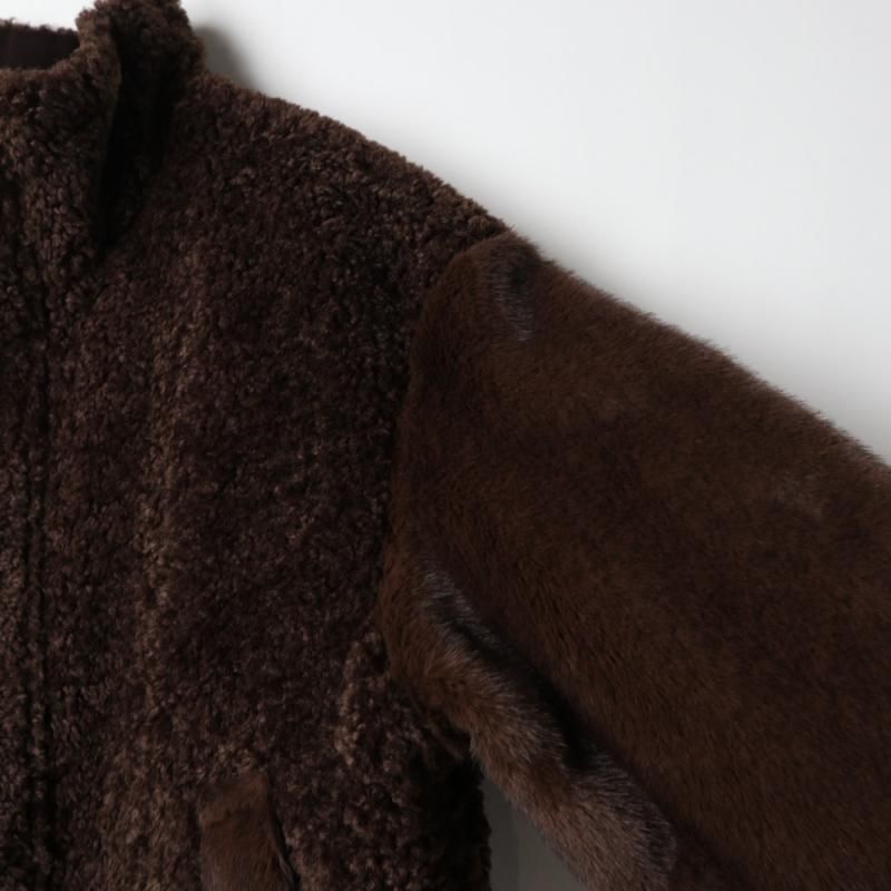 ファーとボアが組み合わさった面と、少し起毛感のあるコットンチノ素材面をリバーシブルで楽しめるブルゾンコート。